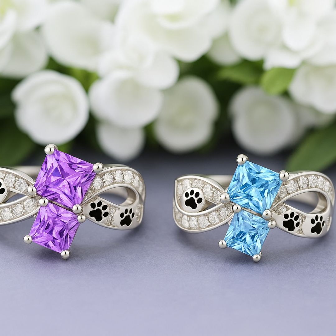 Paw Print Path Stone Rings
